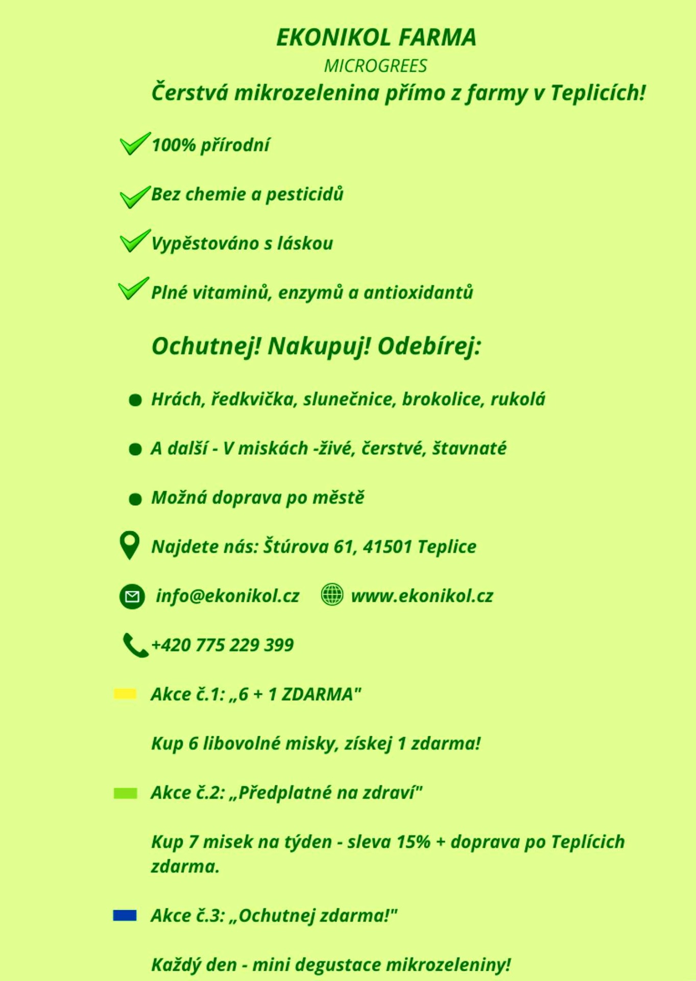 Pouze čerstvé microgreens pěstované zcela bez chemie.